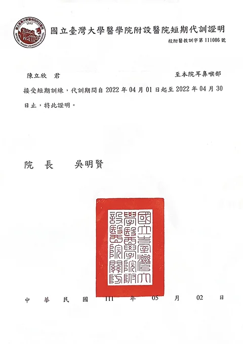 臺大醫院耳鼻喉暨頭頸部研究醫師