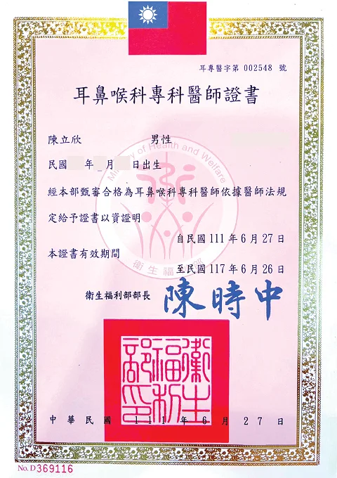 臺北市立聯合醫院耳鼻喉部主治醫師