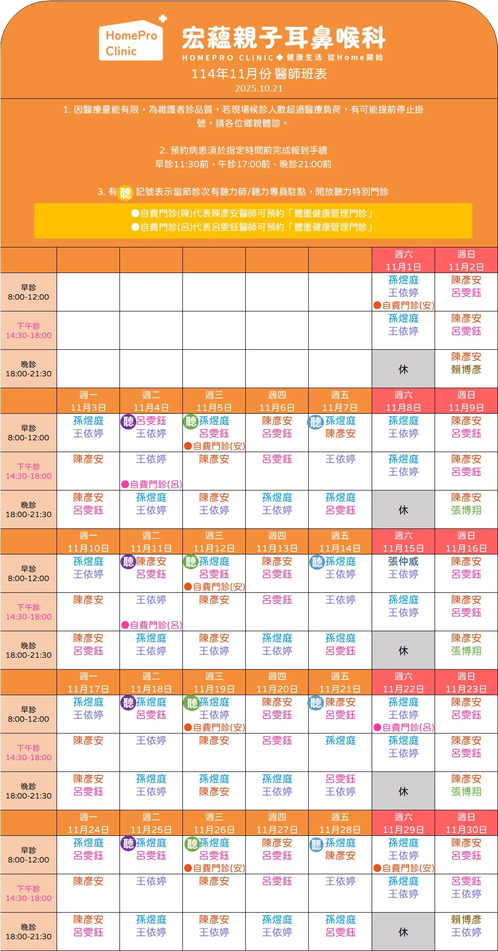 當月門診表